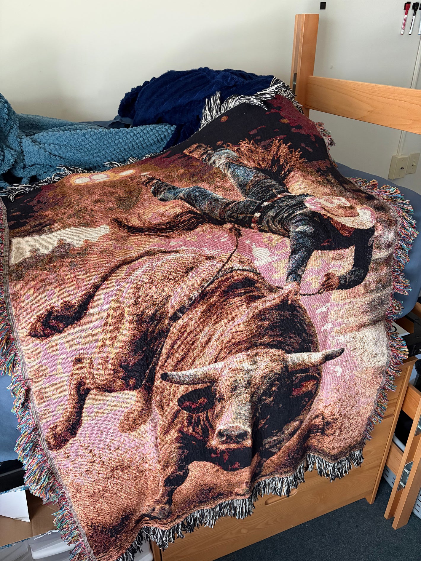 Each one of our blankets are hand woven with authentic rodeo-inspired designs, crafted to bring warmth, character, and a true taste of Western culture into your home. From bold patterns to rich, earthy tones, every blanket is rooted in western tradition and craftsmanship.